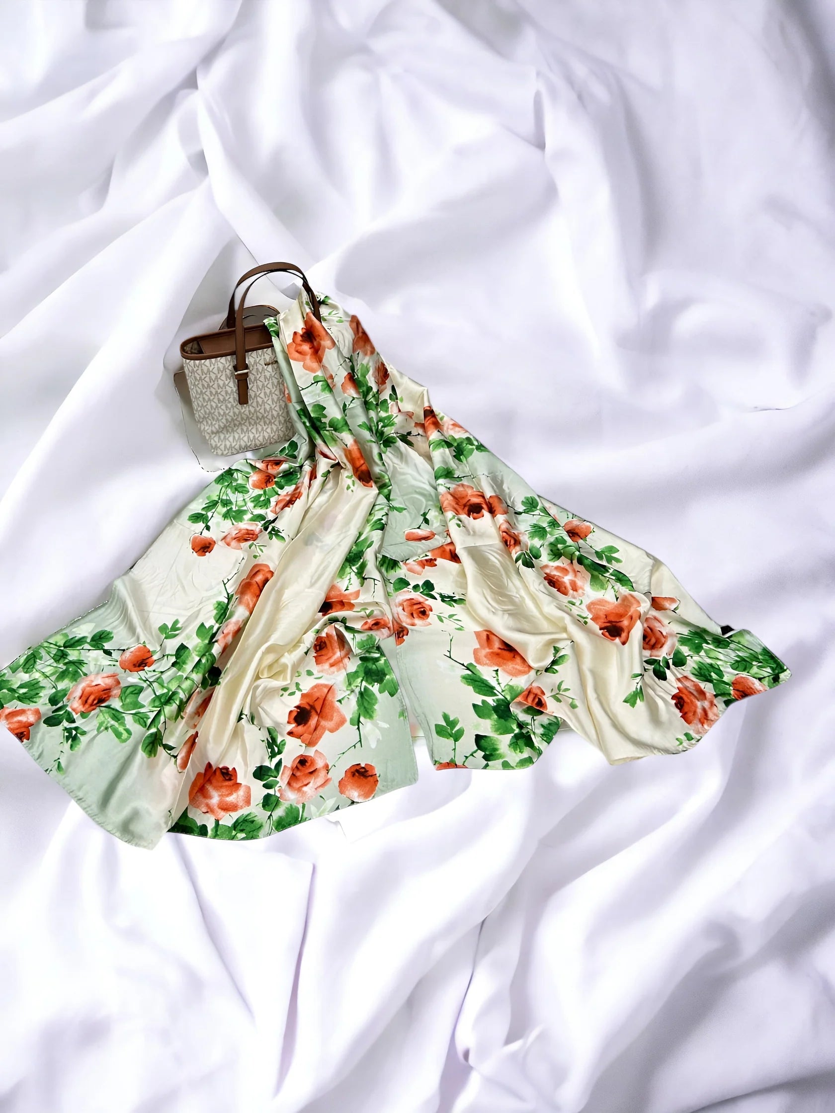 Luxury Satin Silk Hijab – Mint Pastel Floral